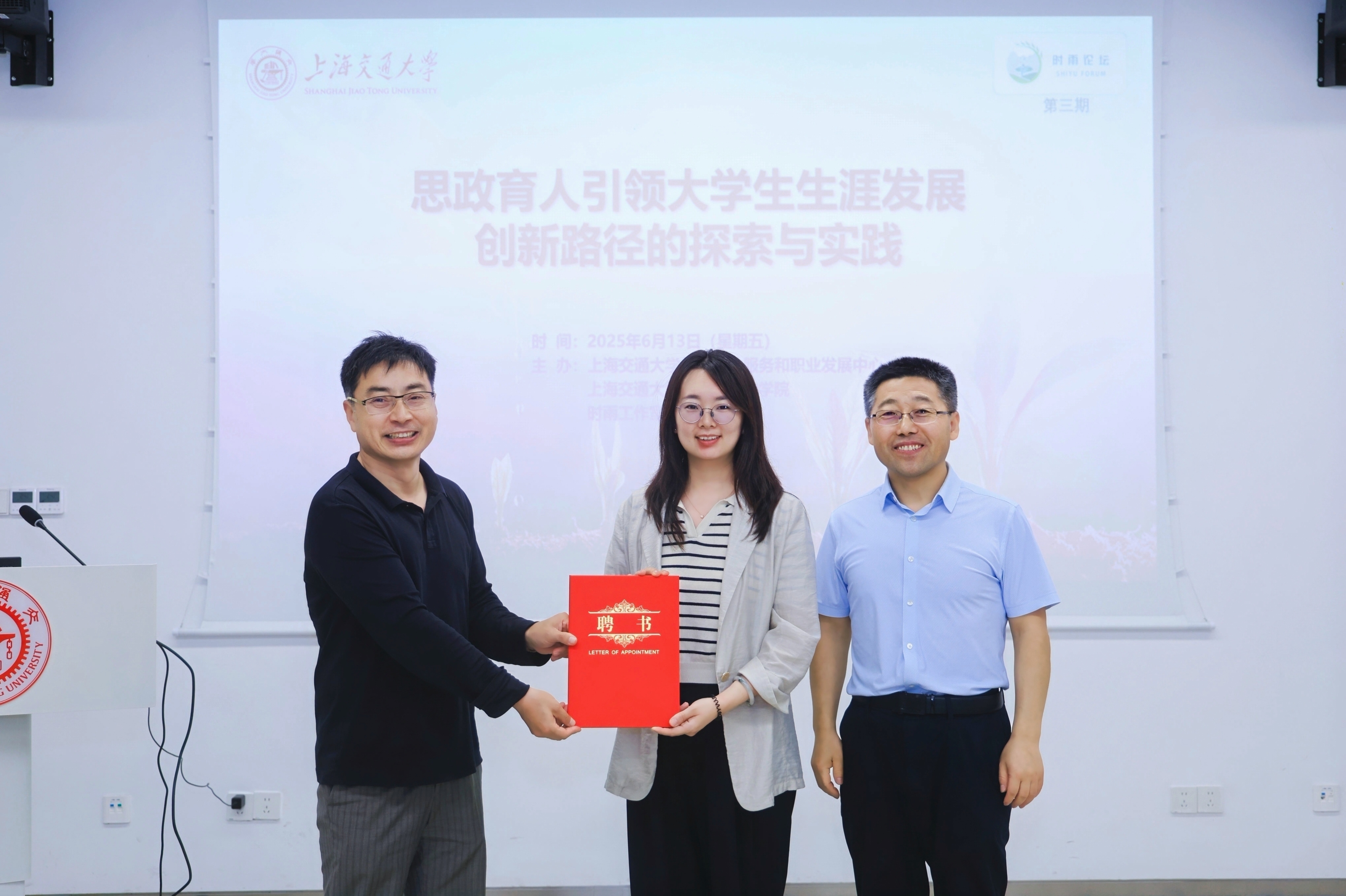 活动还聘请纪静担任“时雨工作室”导师,由上海交通大学学生就业服务和职业发展中心副主任沈延兵为颁发了聘书。