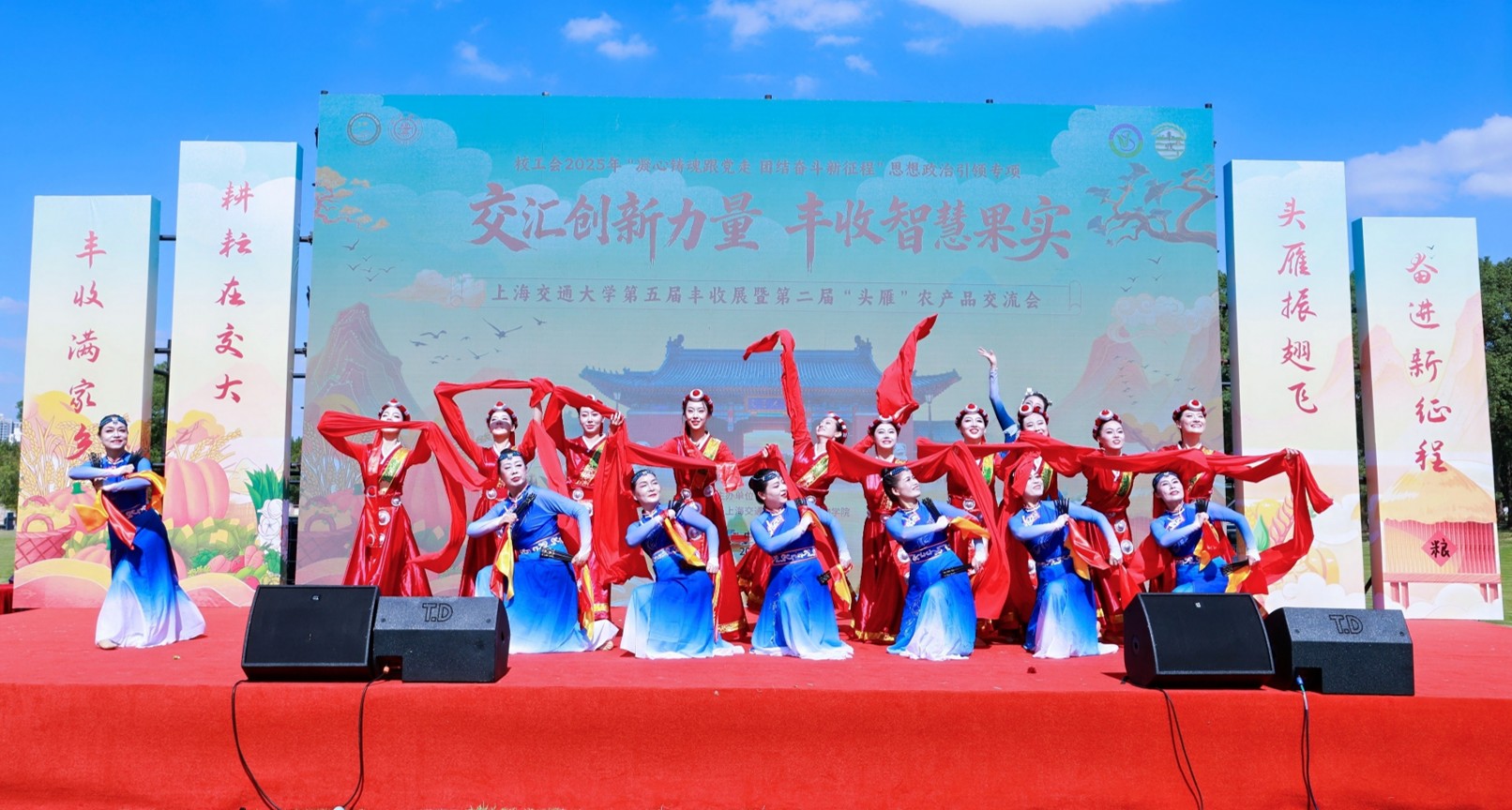 本届“丰收展”延续了以往亮点,并在内容和形式上不断创新,充分展现了高校服务“三农”的责任与担当。来自学院23个研究团队的师生和皖、鄂、鲁、豫、黔、赣六省“头雁”导师与学员齐聚一堂,带着最新研发的农产品亮相展台,充分彰显了“产学研用”协同发展的成果。教工民族舞协会还特别献上《美丽中国》民族舞表演,为丰收展营造出浓郁的节日氛围。