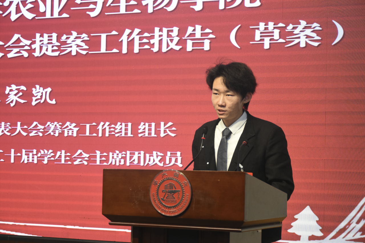 12月3日下午,上海交通大学农业与生物学院第二十一次学生代表大会于学院A楼报告厅顺利举行。共青团上海交通大学委员会副书记张碧菱、农业与生物学院党委副书记张仁伟、上海交通大学学生联合会执行主席王骐宇,以及兄弟院系团委老师、学生会主席团成员及六十余名学生代表出席本次大会。